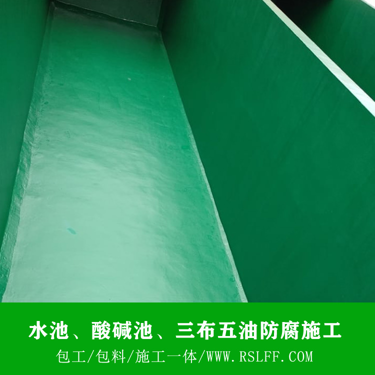 材质:防腐树脂 / 玻璃纤维布。 工艺:三布五油、五布七油。 适用空间:污水池防腐、工业废水池防腐、前处理池防腐、酸碱池防腐、应急池防腐、环保池防腐、酸碱车间及仓库防腐、电泳槽防腐、化学药品生产储存防腐。 产品特点:耐化学腐蚀,耐强酸强碱、盐及各类化学介质腐蚀;附着力强,耐磨、耐冲击、防尘净化;机械性能优良,坚韧而抗冲击,表面平整光洁,便于清洗; 表面硬度高,致密性好。